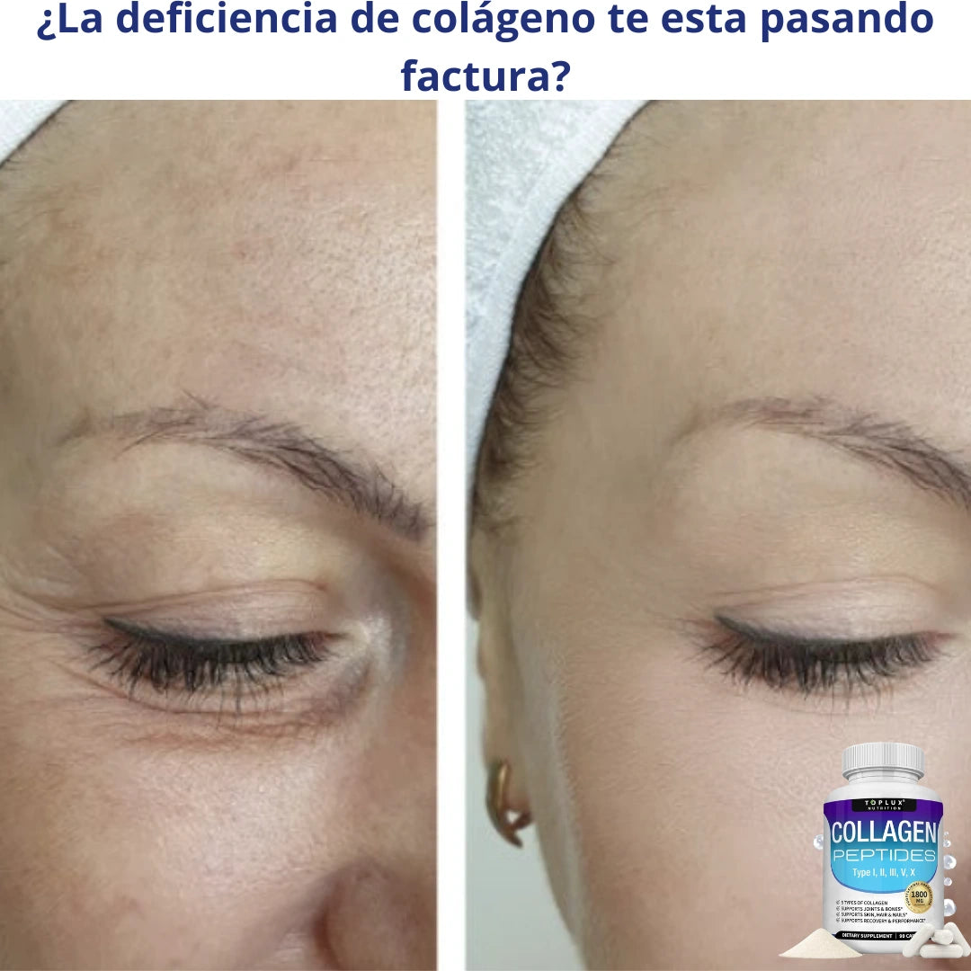 El Colágeno Péptidos Toplux contiene 5 tipos de colágeno (I, II, III, V y X), diseñados para apoyar piel, cabello, uñas, articulaciones y huesos al mismo tiempo. Además, está hidrolizado, por lo que el cuerpo lo absorbe más rápido y de manera más eficiente.