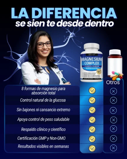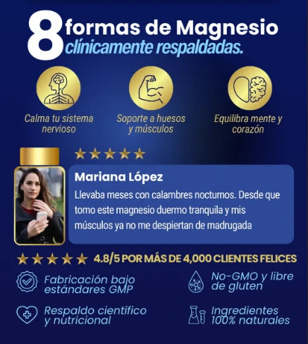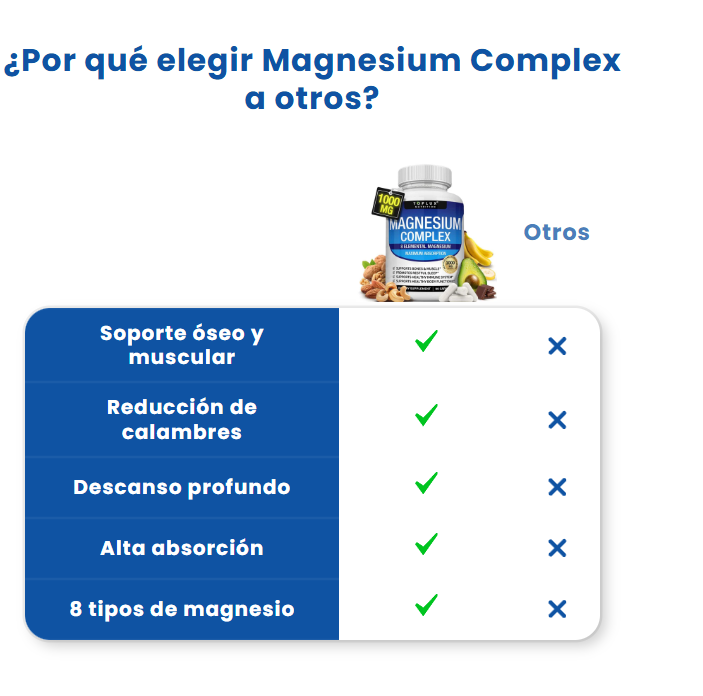 Mientras otras marcas ofrecen una o dos formas de magnesio, Toplux combina 8 tipos altamente biodisponibles para brindar resultados visibles en todos los niveles: energía, descanso, metabolismo, piel y bienestar emocional.